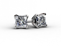 Princess cut Diamond Earrings in Platinum and Prong / Claw set